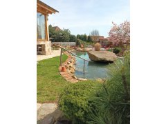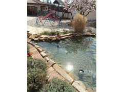 V roce 2018 nás oslovil velmi náročný klient s žádostí o výstavbu okrasného jezírka o velikosti 30m3, potůčku a vodopádu. Po vymezení a zakreslení tvaru jezírka, potůčku a technické místnosti začali výkopové práce. Na dno se položila gule, na bok jezírka se připevnila fóliová příruba pro skimmer Oase AquaSkim Gravity a natáhlo se potrubí a hadice z jezírka do technické místnosti, která se začala stavět ze ztraceného bednění. Uprostřed jezírka jsme nechali ostrůvek na který se později položí velký kámen. Dno a boky jezírka jsme zapískovali kopaným pískem a zabetonovali, následně se položila geotextílie 500g a svařila se jezírková fólie Fatra Aquaplast 805/V olivově zelená dle tvaru jezírka. Zároveň se pracovalo na potůčku a vodopádu. Potůček začíná u technické místnosti a táhne se cca 5m k jezírku, vodu do něj žene zvláštní čerpadlo Oase AquaMax Eco Premium 16000, které se dá dle potřeby vypnout. Pro toto jezírko byla navržena technologie mechanicko-biologického filtru Tripond Center-Vortex C115, UV lampa TMC Pro Pond Advanage 110W a systémové čerpadlo Oase AquaMax Gravity Eco 20000. Vzduchování do filtru i do jezírka jsme zvolili Hailea HAP-60. Pro ulehčení údržby jsme klientovi doporučili automatické dopouštění Oase ProfiClear Guard.
