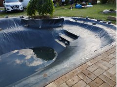 Tento projekt s námi klienti konzultovali od samého začátku s tím, že všechny přípravné a stavební práce si budou provádět sami. Náš úkol byl dozorovat stavbu a následně vyfóliovat a zapojit technologii. Na první schůzce se vše naplánovalo, jak stavební nákresy tak postup prací. Klienti měli na přípravu celé jaro. Nechali podle návrhu vykopat tvar jezírka, tak, aby navazoval na již postavenou terasu. Dle našich požadavků zabetonovali na dno spodní vpusť- gulu, a do stěny fóliovou přírubu na skimmer Oase Aquaskimm Gravity, od nich natáhli potrubí do zapuštěné čerpadlové šachty. Do té se umístí čerpadlo, které bude tahat vodu do filtru postaveného za stěnou z gabionu. Po těchto stavebních úpravách jezírko pokryli kopaným pískem. Pak už mohli naši technici přijet pokládat fólii. Nejdříve na kopaný písek položili geotextílii 500g a pak svařovali jezírkovou fólii Fatra Aquaplast 805/V olivově zelenou přesně dle tvaru jezírka. Po dokončení se začala ihned napouštět voda. Mezi tím připojili vybranou technologii. Na přání zákazníka (jednoduchou na obsluhu, malou) jsme vybrali filtr Oase BioTec Screenmatic2 140000 na něj se pověsila na speciálních hákách UV lampa TMC Pro Pond Advantage 110W, do čerpadlové šachty se zapojilo čerpadlo AquaForte O-series 13000. Tento jednoduchý a relativně malý systém udrží vodu spolehlivě čistou po celou sezonu.