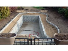 Na přání zákazníka byl nejprve zpracován grafický návrh zahrady. Koncem září započala realizace koupacího jezírka při které zároveň došlo i k celkové úpravě zahrady. Bylo nutné předělat (přeložit) závlahu z důvodu výstavby koupacího jezírka. Vytvořil se tvar jezírka a začala se bagrovat koupací část malým bagříkem. Technická místnost vznikla ve sklepě uvnitř obytného domu, proto bylo nutné vytvořit prostupy pro potrubí. Obvod koupací části byl postaven ze ztraceného bednění, položila se technologie a vytvořily se mělké zóny. Po vystavění odvodu jezírka došlo k protažení potřebných trubek a hadic k technologii. Mělké zóny se vypískovaly a začalo se s pokládkou geotextílie 500g a fólie Fatra Aquaplast 805/V 1,5mm olivově zelené. K foliování se použily speciální lišty na připevnění fólie a přidělalo se bazénové světlo. Následně začala úprava zbytku zahrady, odstranili se a prořezali staré keře. Skrytým obrubníkem se oddělila tráva a zóny kde budou vysázeny nové okrasné keře a rostliny. Zároveň se zapojila závlaha, tak aby správně zalévala co bude potřeba. Byly dosázeny okrasné stromky, keře a byla položena mulčovací textílie proti prorůstání trávy. Na přání zákazníka se položil okrasný kačírek a mulčovací kůra do těchto zón. Z pískovcového kamene se vytvořili pochozí šlapáky kolem jezírka a dále se pak obložil obvod jezírka a obložily se z nich schody v koupacím jezírku. Z pískovce se tvořil i vodopád, který bude napájen extra čerpadlem, aby bylo možno ho zapínat dle potřeby. Mezi šlapáky a do mělkých zón byl naaranžován okrasný kačírek. Pro tento systém bylo navrženo: biologicko-mechanický filtr Tripond Center-Vortex C-115, úsporné čerpadlo Oase Aquamax Gravity Eco 15000, UV lampa TMC Pro Clear Advantage 110W, na vodopád bylo použito úsporné čerpadlo AquaForte O-series 10000 + nasávání pro efekt vodopádu, gula dnová spodní 110mm a skimmer Oase AquaSkim Gravity.