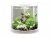 Akvárium s netradičním válcovým designem Oase biOrb TUBE v bílé barvě umožňující 360° pohled na dekorace či ryby uvnitř akvária. Oase biOrb dekorace květiny