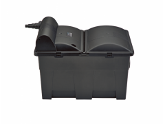 Výkonný průtokový filtr pro zahradní jezírka do 4m3 a jezírka s rybami. Kombinace filtrační pěny a integrovaného čističe UVC zajišťuje nejlepší výkonnost filtrace. Různé filtrační pěny zajišťují optimální mechanickou a biologickou filtraci. Pro čištění má průtokový filtr páky pro stlačení nečistot z filtračních pěn, spodní odtok a připojení pro výplach.