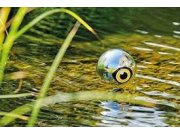 Reflexní koule s okem dravců ruší volavky a ostatní ptactvo a chrání tak obyvatele rybníka.