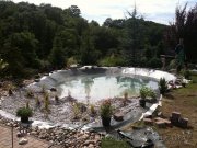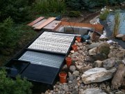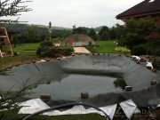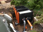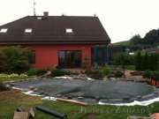 Realizace okrasného jezírka poblíž Mostu, o velikosti 24m3. Jezírko bylo vykopáno bagříkem, poté byla položena technologie, vypískování jezírka, položení geotextílie a folie Fatra Aquaplast 805 1,5mm. Zde byl použit na zakázku vyrobený filtr z PP materiálu (objem 2m3), UV lampa Aqua Forte 75W, čerpadlo 18000l/hod., vzduchovací zařízení Resun PG-60. Zapojení technologie je gravitačně, 1x trubkový skimmer Oase AquaSkim Gravity, 1x gula dnová vpusť 110mm. Součástí jezírka je skalka ve které je zabudován kaskádovitý potok. Jde o extra systém, kde je možnost zapínat či vypínat na dálkový ovladač nebo přes spínací hodiny. Technická místnost a filtrace jsou v těsné blízkosti jezírka, usazeny v zemi. Nasazené ryby: KOI kapři, jeseteři.