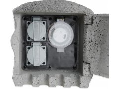 Venkovní-zahradní zásuvky ve tvaru kamene. Za nenápadnými dvířky jsou ukryty 2 zásuvky v krytí ...